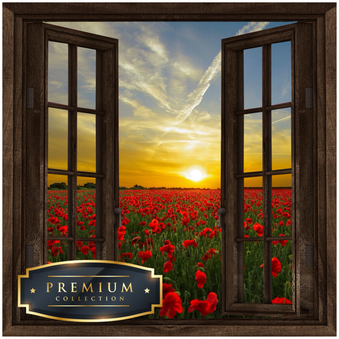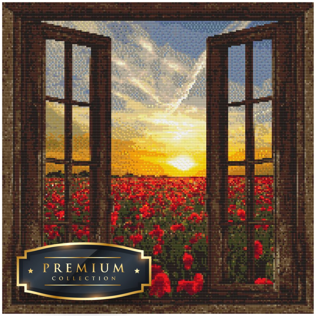 Klaprozen achter het raam DP Diamond Painting in het formaat 50×50 centimeter met 45 kleuren.