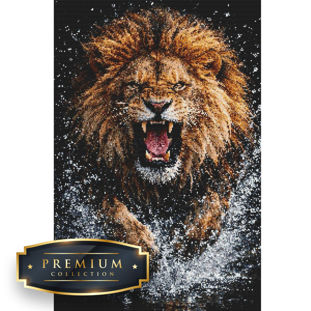 Dit diamond painting pakket van deze machtige brullende leeuw bevat een duidelijk leesbaar canvas met volledige bedekking en vierkante steentjes, die overigens al voorgesorteerd in cupjes worden geleverd.