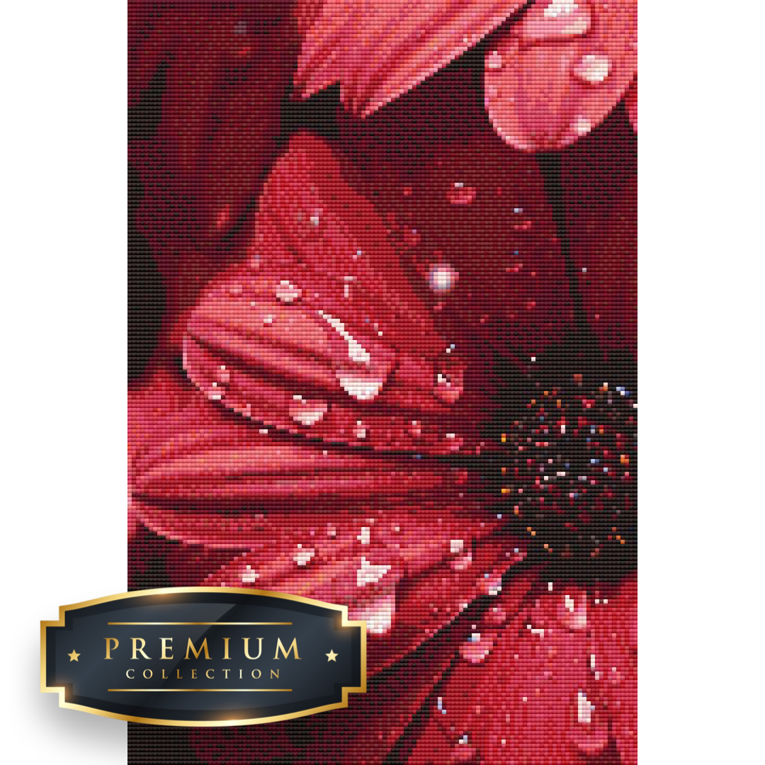 Dit diamond painting pakket van deze rode gerbera van heel dichtbij bevat een duidelijk leesbaar canvas met volledige bedekking en vierkante steentjes, die overigens al voorgesorteerd in cupjes worden geleverd.