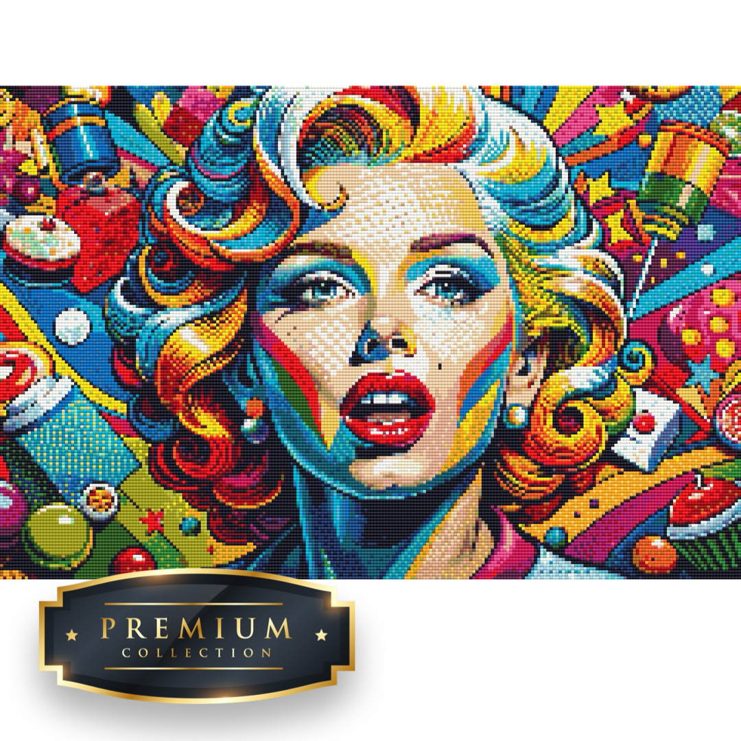 Pop Art Marilyn Monroe DP Diamond Painting in het formaat 40×60 centimeter met 46 kleuren.