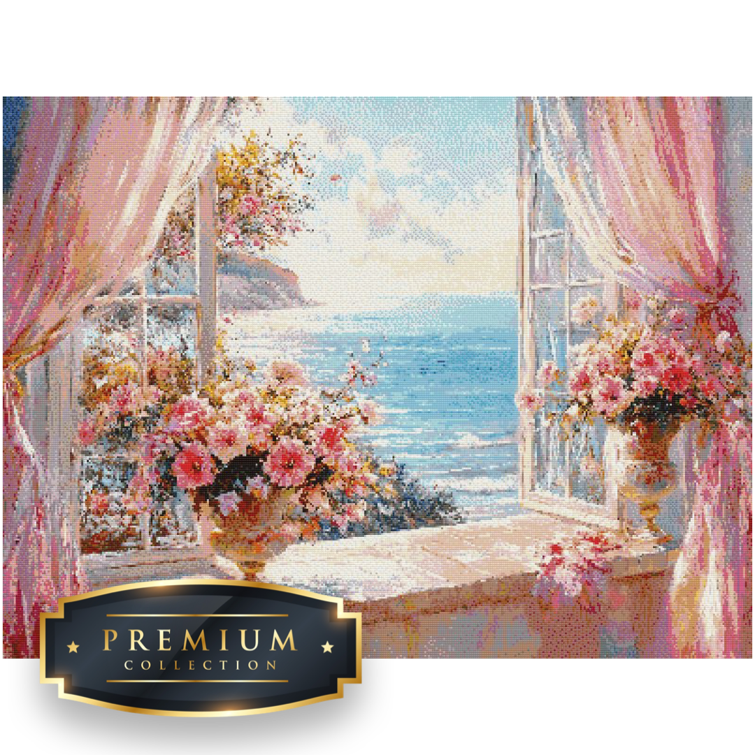 DP Diamond Painting Uitzicht op zee in het formaat 75×100 centimeter met 50 kleuren.